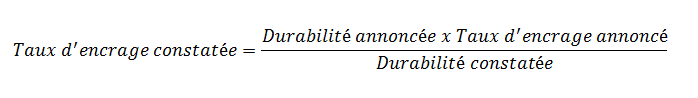 Il s'agit donc de calculer le taux d'encrage (ou taux d'encrage constaté) propre à cette couleur pour le bien concerné.