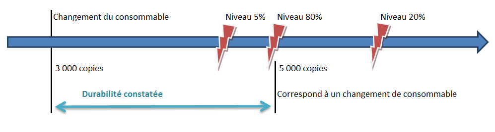 La durabilité constatée correspond au nombre de copies réellement réalisées par le consommable