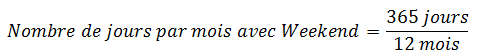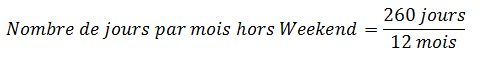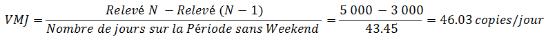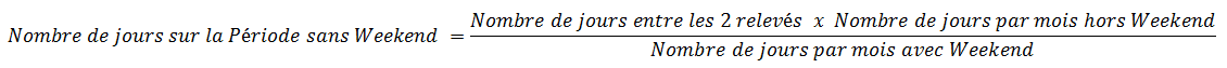 Consommation journalière ou Moyenne de consommation journalière : consommation entre les deux derniers relevés / nombre de jours sur la période. Le calcul se fait à partir d'une période sans tenir compte des weekends.